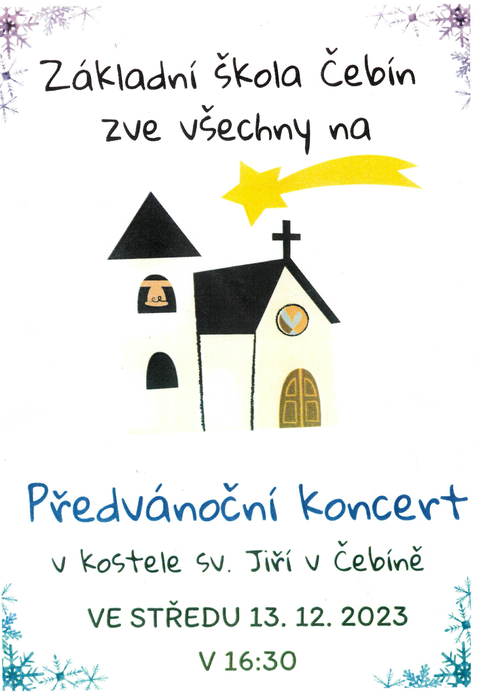 Základní škola Čebín srdečně zve na předvánoční koncert v kostele sv. Jiří v Čebíně, který se koná ve středu 13. prosince v 16. 30 hodin.
