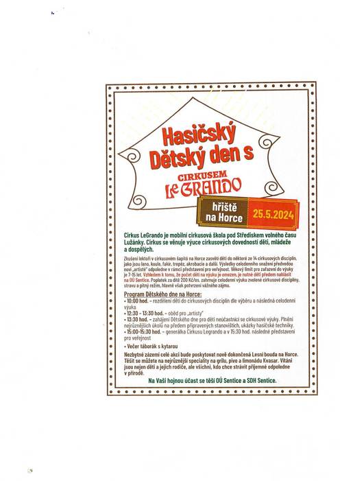 Úvod > Aktuality > Pozvánka na hasičský den s Cirkusem Le Grando na hřišti na Horce v Senticích 25. května