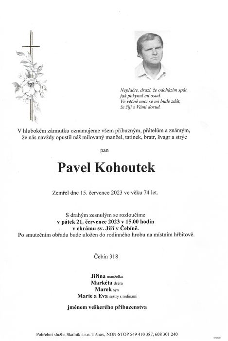 Úvod > Aktuality > Smuteční oznámení pan Pavel Kohoutek