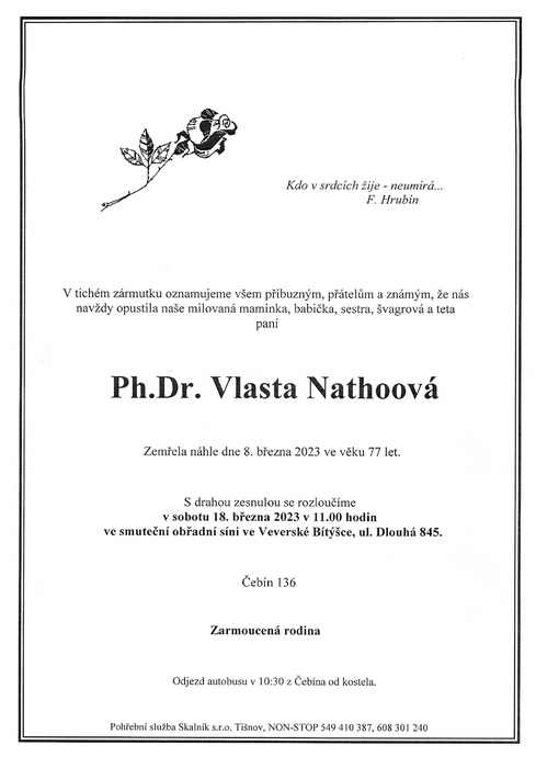Úvod > Aktuality > Smuteční oznámení paní Vlasta Nathoová