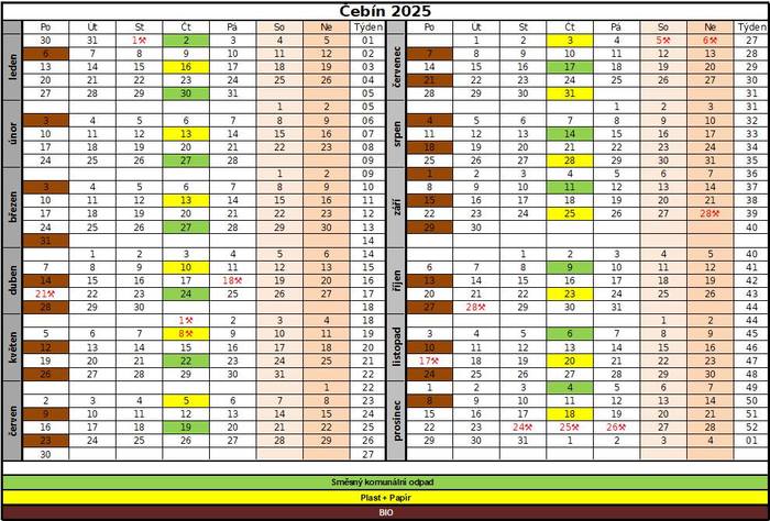 Úvod > Obecní úřad > Odpadové hospodářství > Kalendář svoz odpadů na rok 2025 > Kalendář svozu odpadů na rok 2025